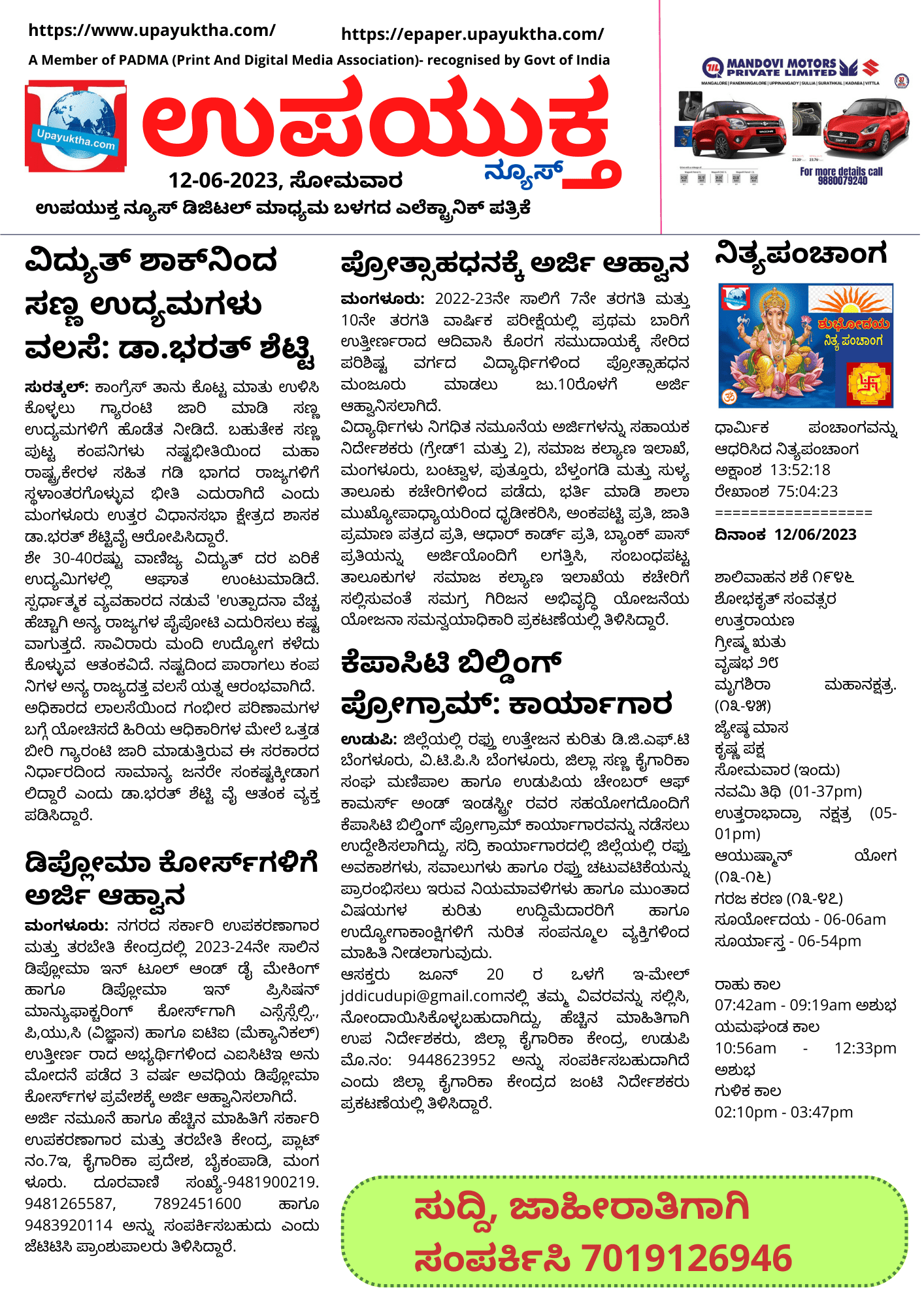 ಉಪಯುಕ್ತ ನ್ಯೂಸ್ ಇ-ಪೇಪರ್, 12 ಜೂನ್ 2023, ಸೋಮವಾರ