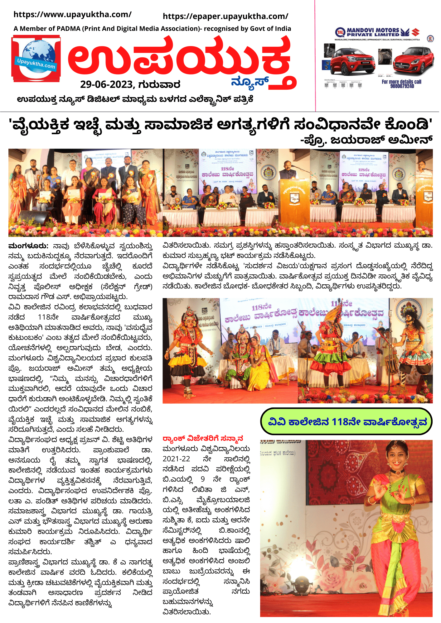 ಉಪಯುಕ್ತ ನ್ಯೂಸ್ ಇ-ಪೇಪರ್, 29 ಜೂನ್ 2023, ಗುರುವಾರ