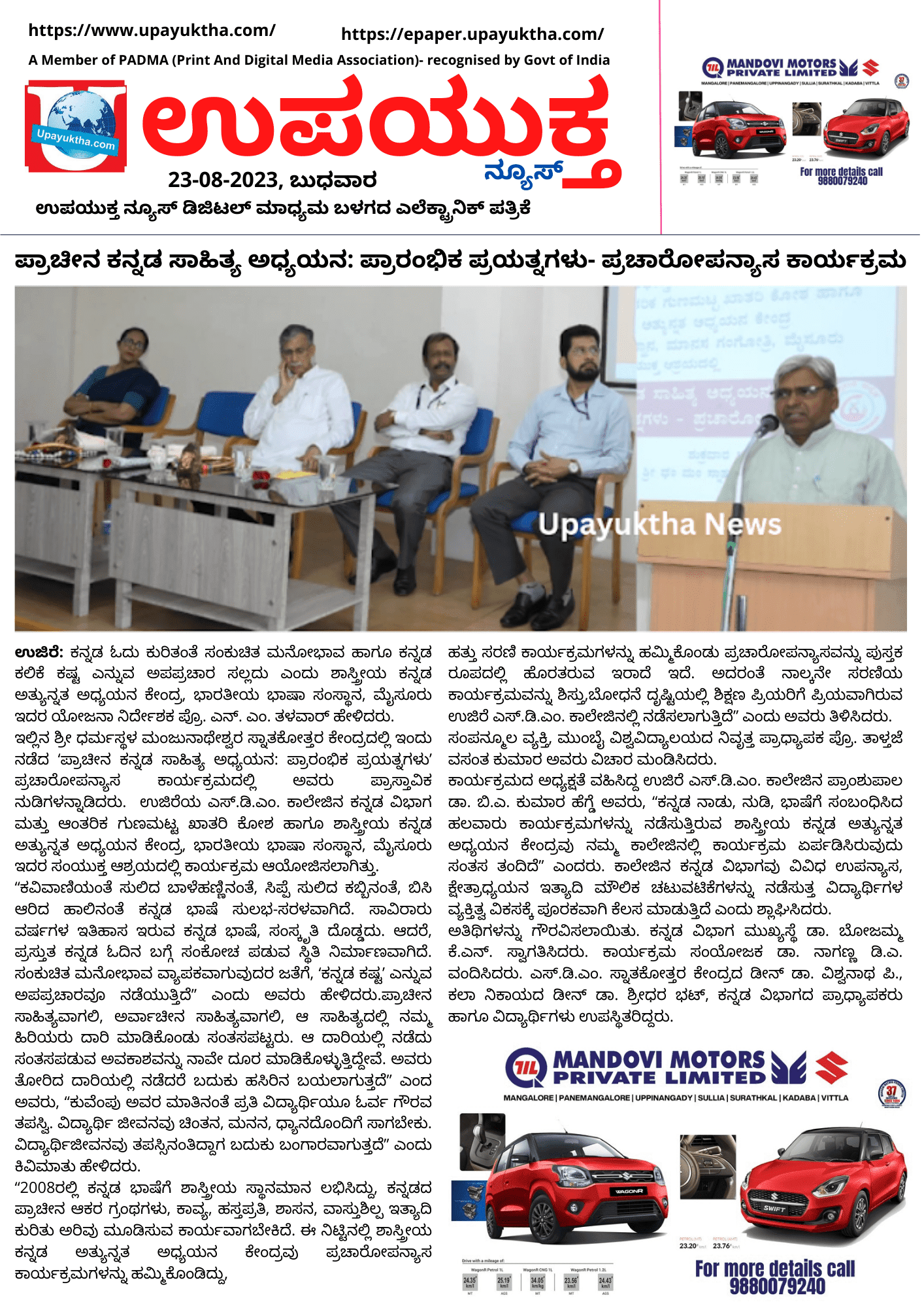 ಉಪಯುಕ್ತ ನ್ಯೂಸ್ ಇ-ಪೇಪರ್, 23 ಆಗಸ್ಟ್ 2023, ಬುಧವಾರ