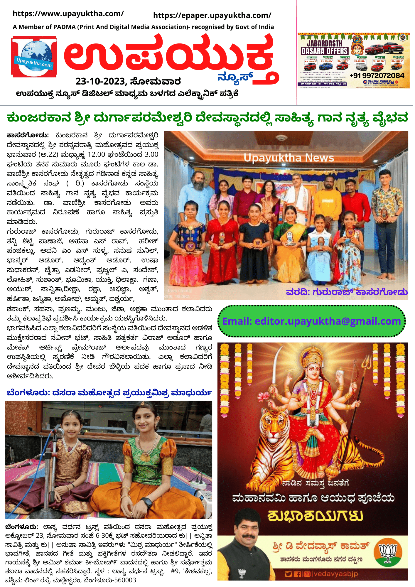 ಉಪಯುಕ್ತ ನ್ಯೂಸ್ ಇ-ಪೇಪರ್, 23 ಅಕ್ಟೋಬರ್ 2023, ಸೋಮವಾರ