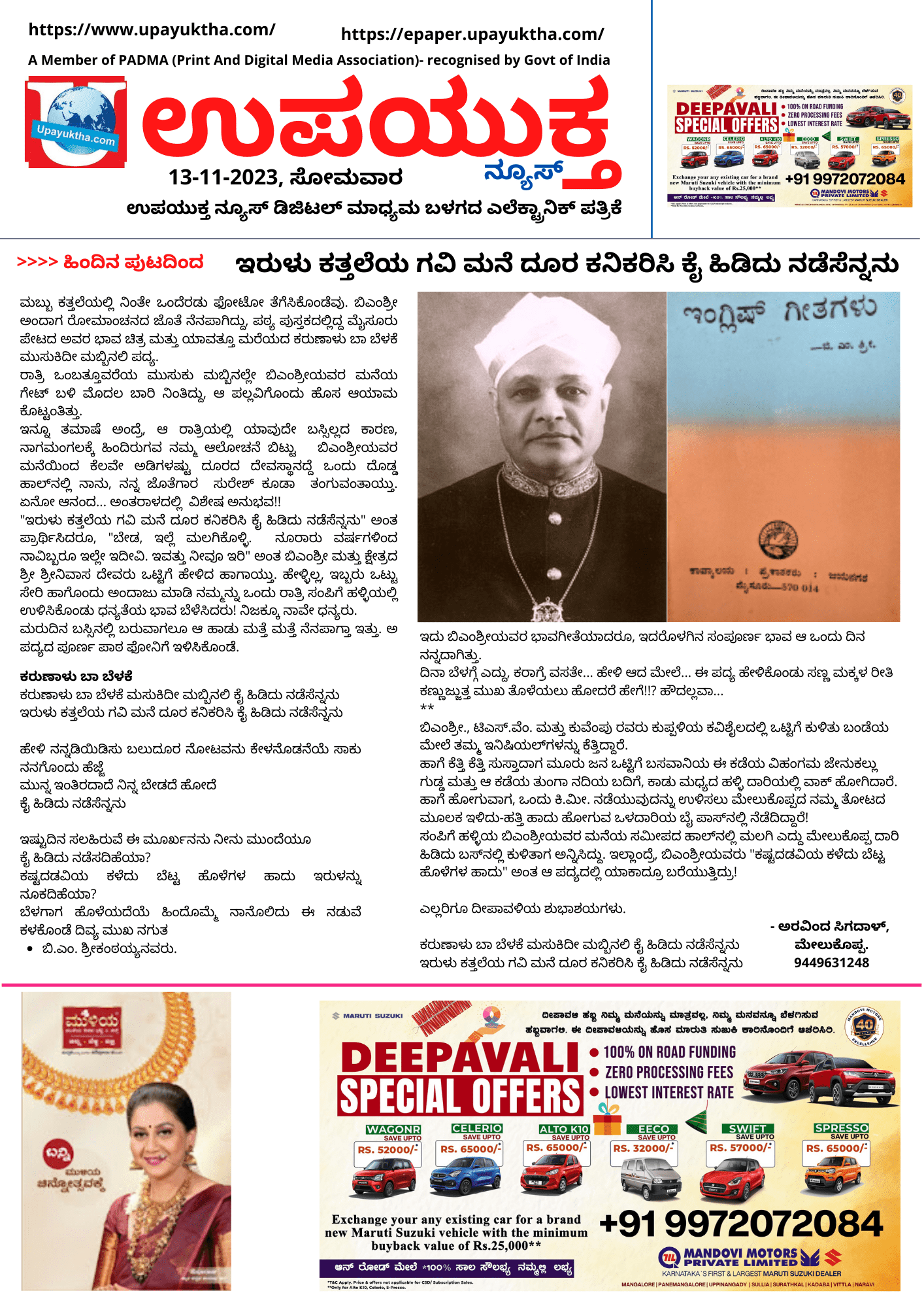 ಉಪಯುಕ್ತ ನ್ಯೂಸ್ ಇ-ಪೇಪರ್, 13 ನವೆಂಬರ್ 2023, ಸೋಮವಾರ