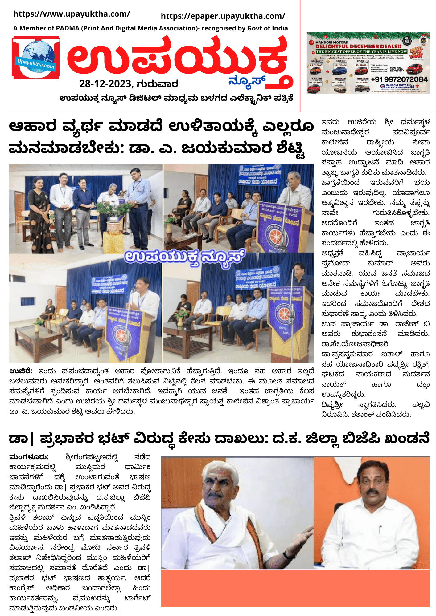 ಉಪಯುಕ್ತ ನ್ಯೂಸ್ ಇ-ಪೇಪರ್, 28 ಡಿಸೆಂಬರ್ 2023, ಗುರುವಾರ
