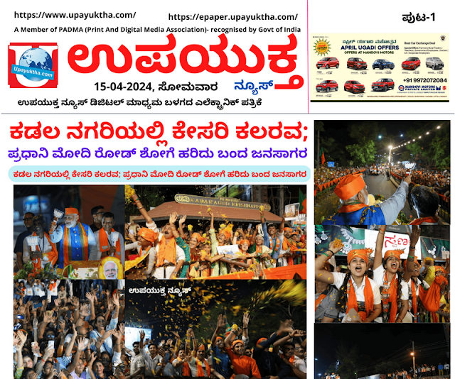ಉಪಯುಕ್ತ ನ್ಯೂಸ್ ಇ-ಪೇಪರ್, 15 ಏಪ್ರಿಲ್ 2024, ಸೋಮವಾರ