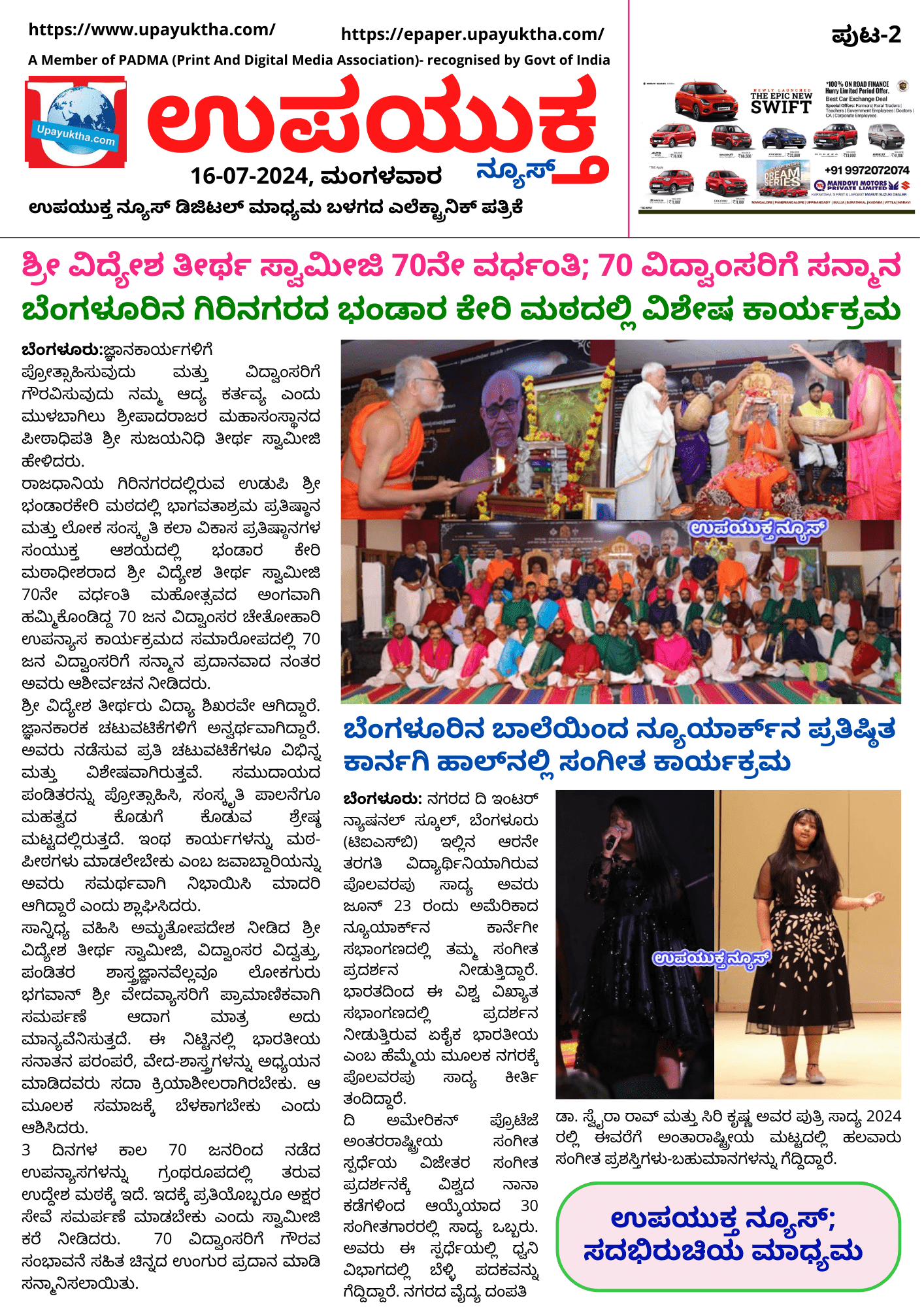 ಉಪಯುಕ್ತ ನ್ಯೂಸ್ ಇ-ಪೇಪರ್, 16 ಜುಲೈ 2024, ಮಂಗಳವಾರ