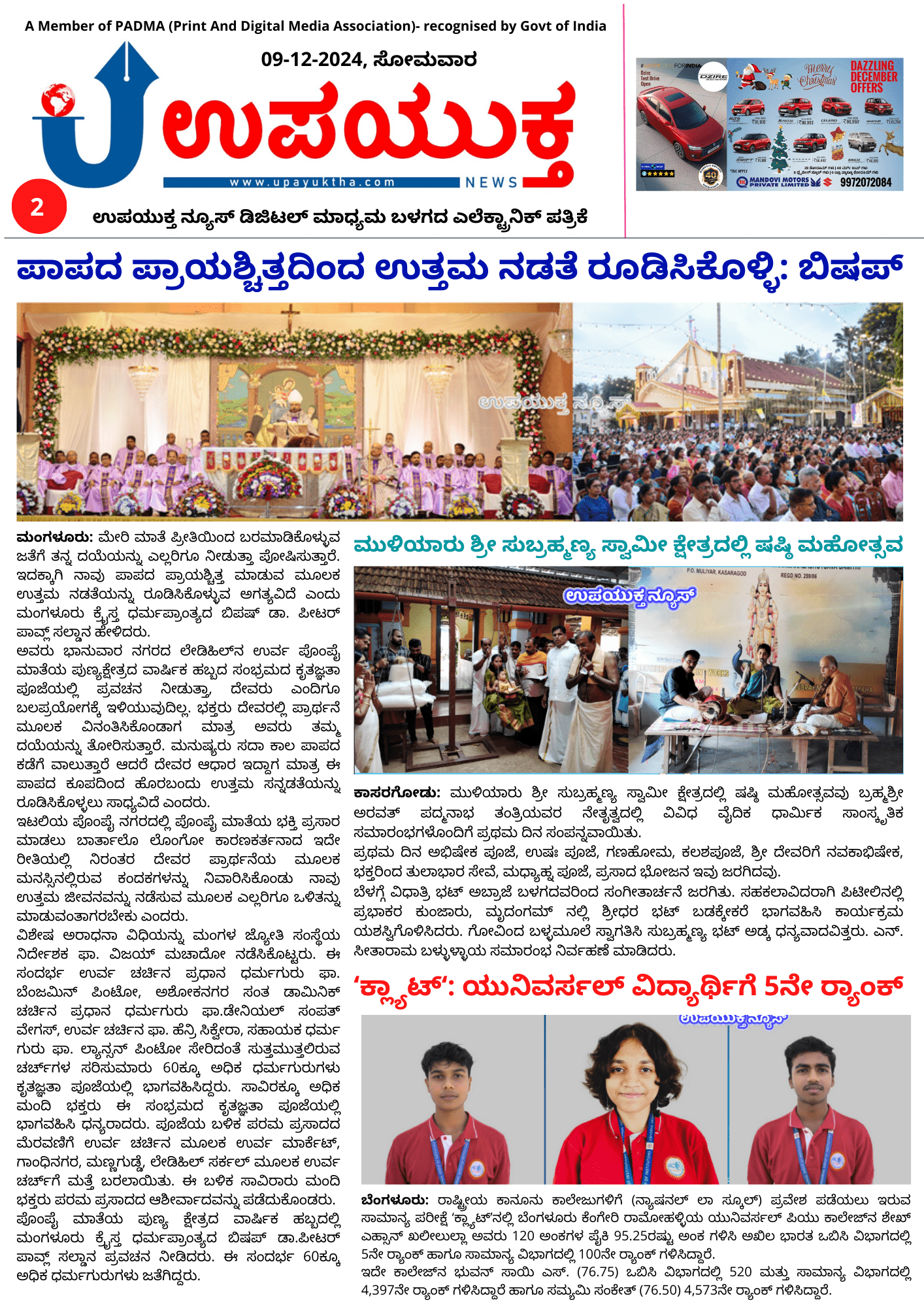 ಉಪಯುಕ್ತ ನ್ಯೂಸ್ ಇ-ಪೇಪರ್, 09 ಡಿಸೆಂಬರ್ 2024, ಸೋಮವಾರ
