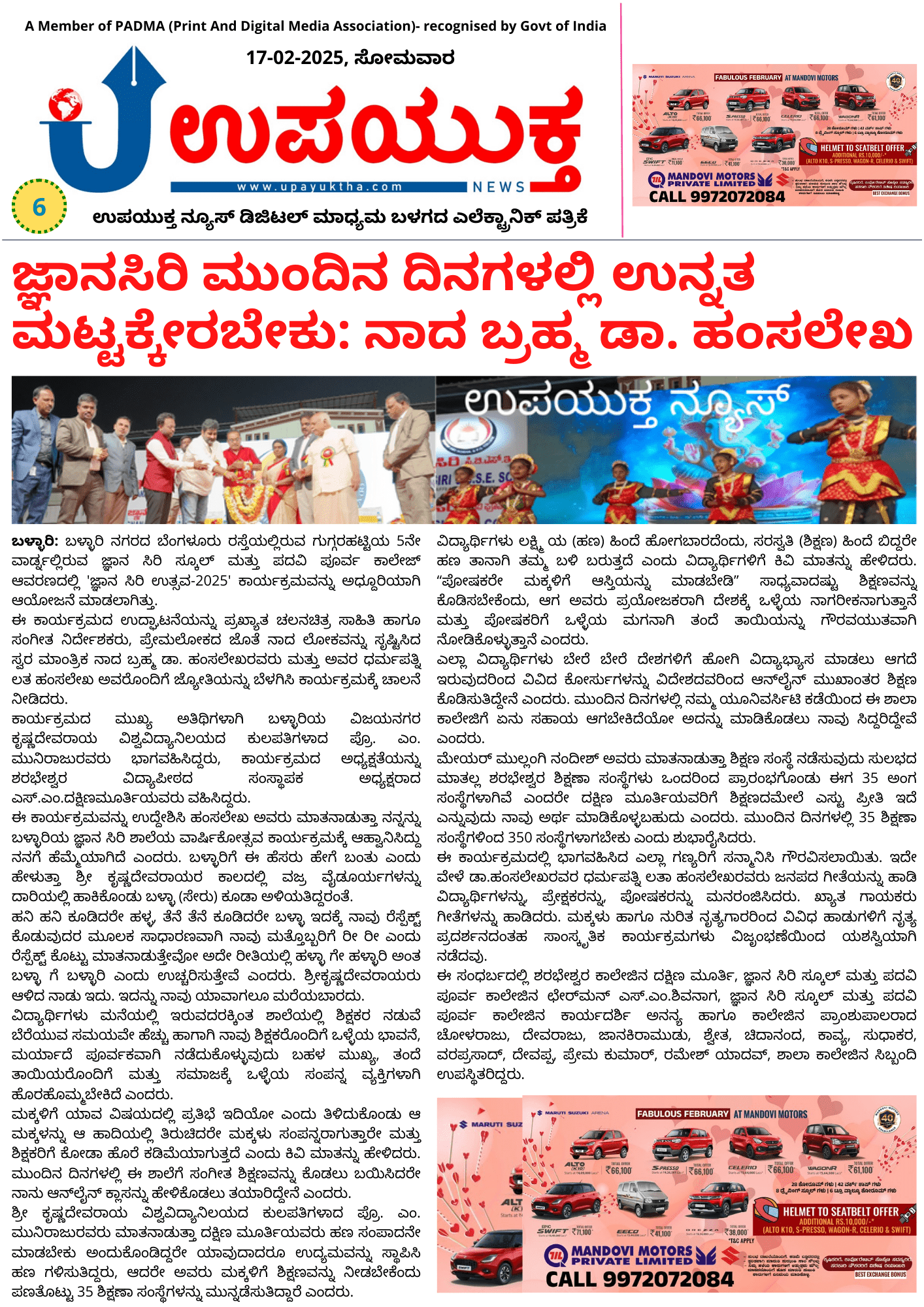 ಉಪಯುಕ್ತ ನ್ಯೂಸ್ ಇ-ಪೇಪರ್, 17 ಫೆಬ್ರವರಿ 2025, ಸೋಮವಾರ